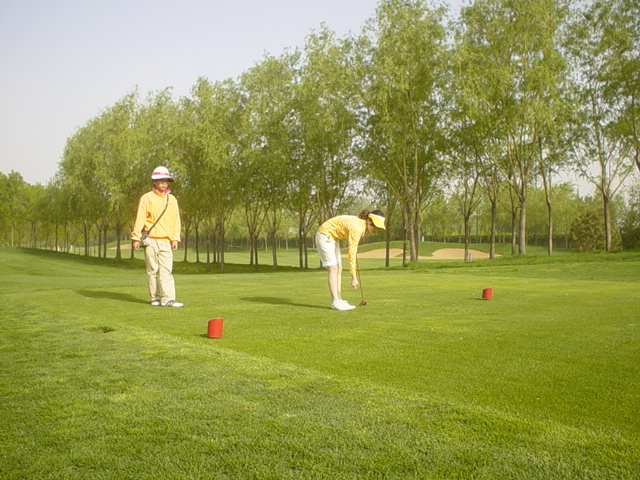 ご親切に予約から何からすべて世話をして迎えにまで来てくださったのは、北京はすでに20数年在住のベテラン小林さん(残念ながらラウンド中の雄姿は、この後姿一枚しか・・・向かって右)