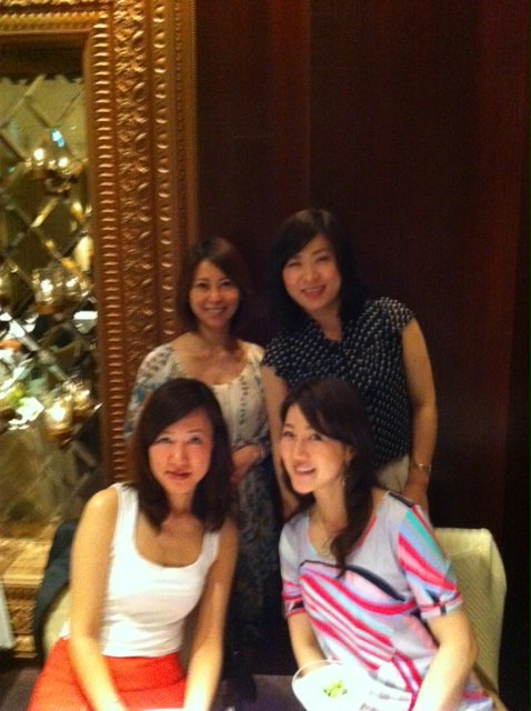 さて、本日のメンツはご覧のとおり、後ろから時計回りに元日テレ局アナの魚住りえさん、中国語・韓国語スクールを営む諸葛仁順校長先生、そして我ら元D社同僚のあっこちゃん(以前にも登場⇒http://www.chemin-libre.com/blog/2010/11/post-29.html)![]()