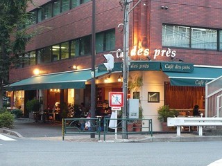 場所は懐かしのCafe des pres。十数年前によく来ていたものだ。外苑西通りから広尾ガーデンヒルズに上っていく坂道の手前の角で、緑がうっそうとしているなか、もの静かでロマンチックな感じが変わらず、とてもほっとした。オープンテラスの雰囲気もまさに本場さながらで、パリを思い出すぅ~!![]()