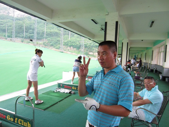 手前が中国人のレッスンプロで、後ろは日本から赴任中のお漬物メーカーの清水社長とその奥様(中国人の方だが、素晴らしい腕前でびっくり)