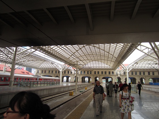 写真は青島駅ホームの様子で、6月の国内移動に使ったときのもの。まさに、今回事故を起こしたのと同じ「和諧号」シリーズだ。