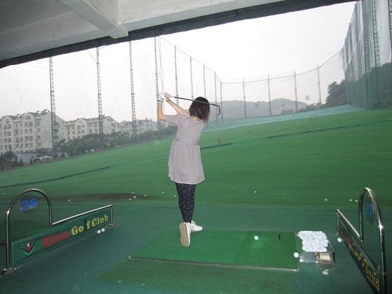 さすがにおなか周りが重くてテイクバックもフィニッシュも、ツイストが効かなかったけど、球に当たる感覚を久しぶりに味わって満足!