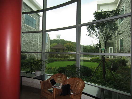 とはいっても私はさすがにプレイしている場合ではないので、クラブハウスのラウンジで仕事しながらウェイティング: