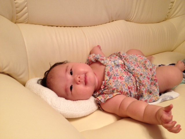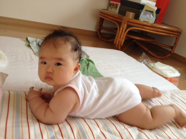 最近いよいよ本格的に寝返りを打つようになって、朝目が覚めるとこんな姿で待っていてくれたりする・・・