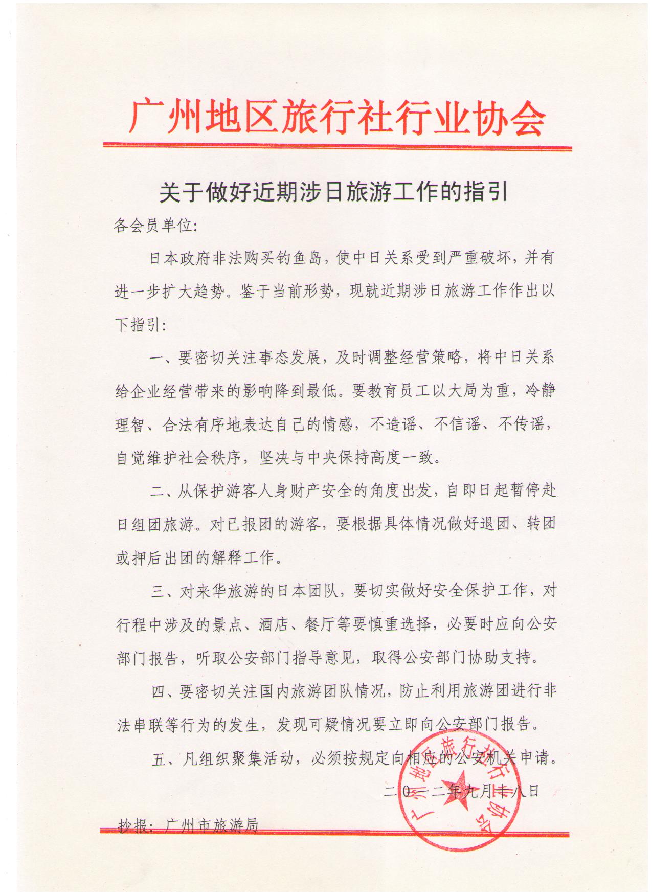 そのうちの一つ、以前ブログでも紹介した、美容関連のセミナー(→http://www.chemin-libre.com/blog/2012/04/post-70.html)も、現地担当者がギリギリまで奮闘した甲斐もなく実施直前にやむなく渡航中止との連絡が来て、その際、広州市旅行局の通達が添付されていた。