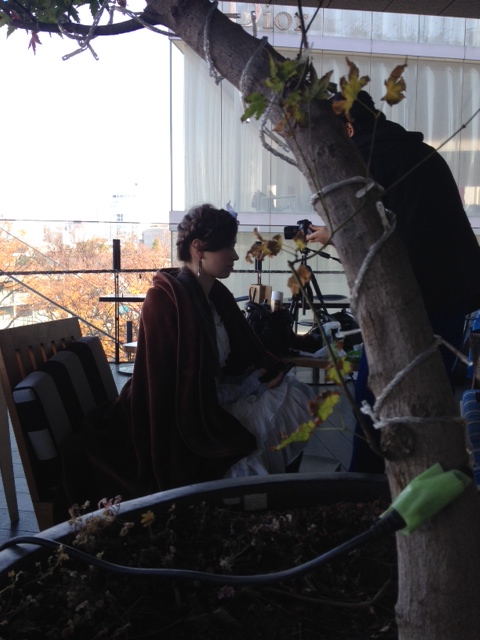 (オープンエアでメイク中のモデルさん、寒そう・・・)