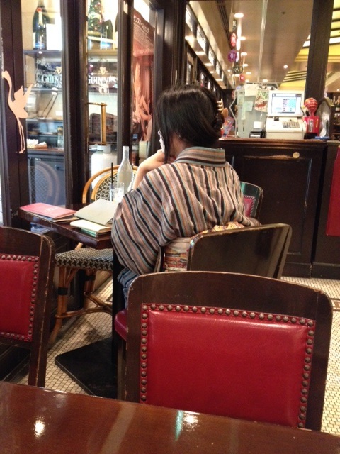 昼下がりの店内に入って一人先に席へ案内されると、目の前に和服麗人の後ろ姿が。