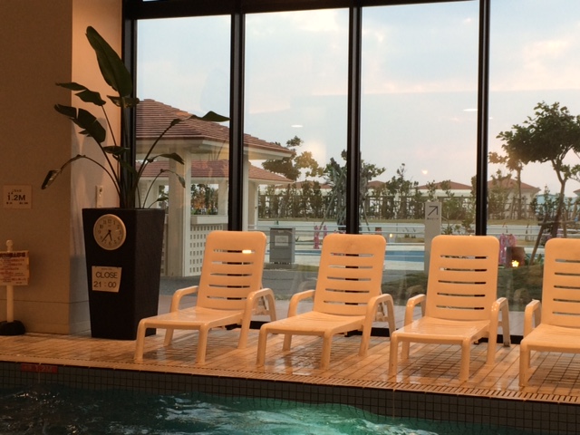 さすがに外で泳げるほどではないので、おとなしくきょうのところは、室内の温水プールで。